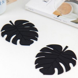 미니멀 블랙 나뭇잎 컵받침 2개1SET