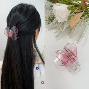 투명 듀얼하트 집게핀 핑크