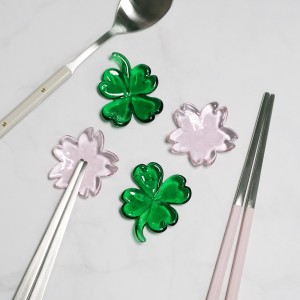 행운 네잎클로버 벚꽃 유리 젓가락받침 수저받침