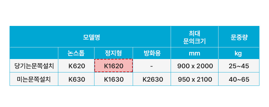 [바이핸즈]도어클로저/K1620/정지형
