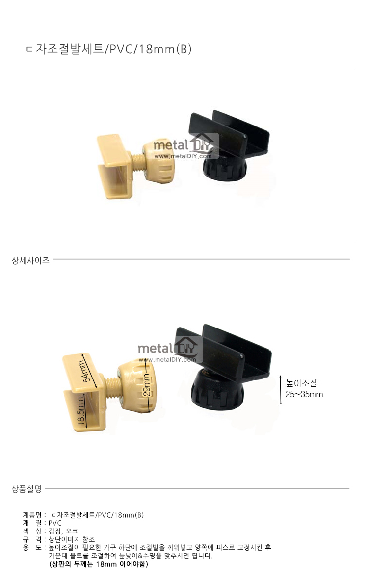 [바이핸즈]ㄷ자조절발세트/PVC/18mm/B형/색상선택