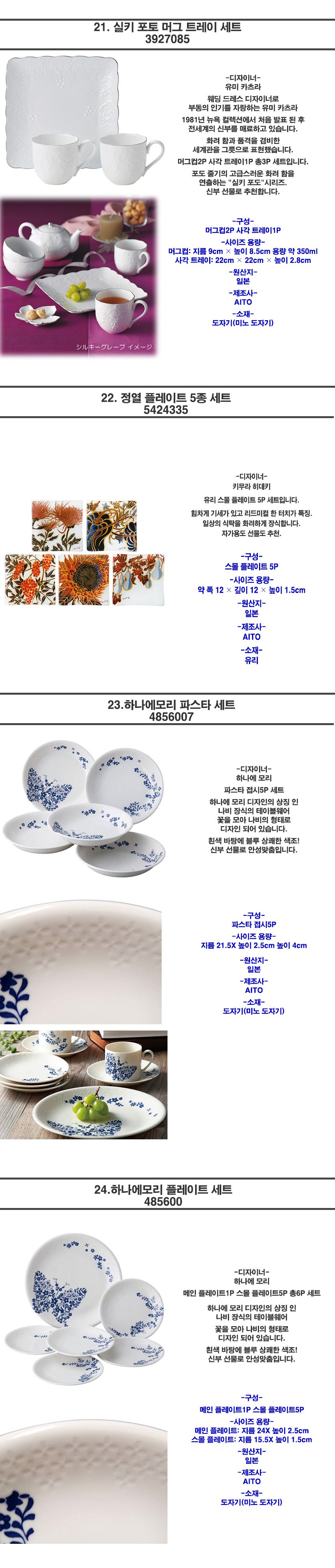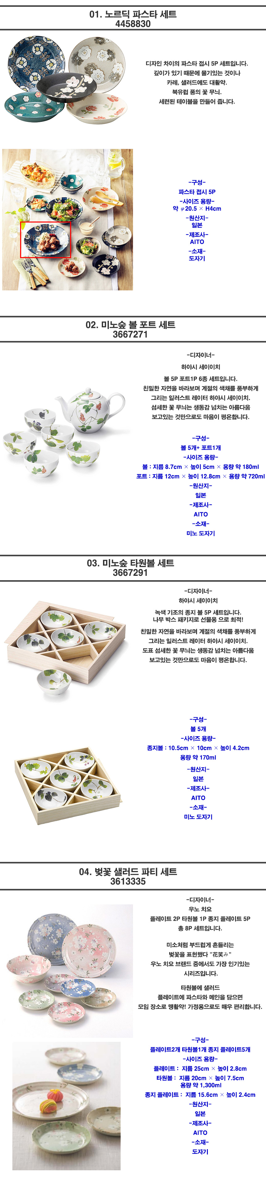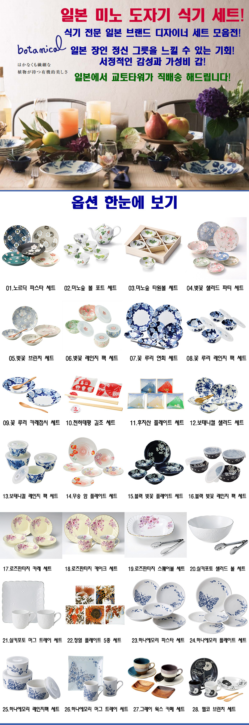 일본 브랜드 디자이너 그릇 세트 특가 모음전 28종!