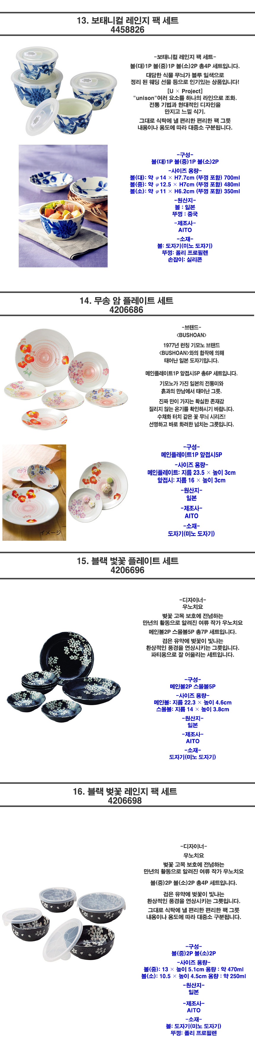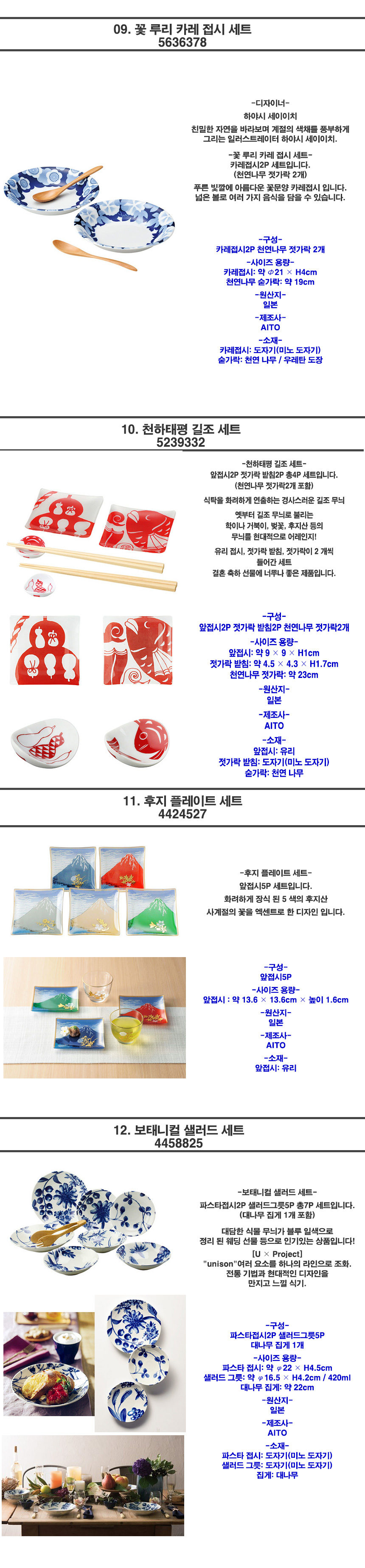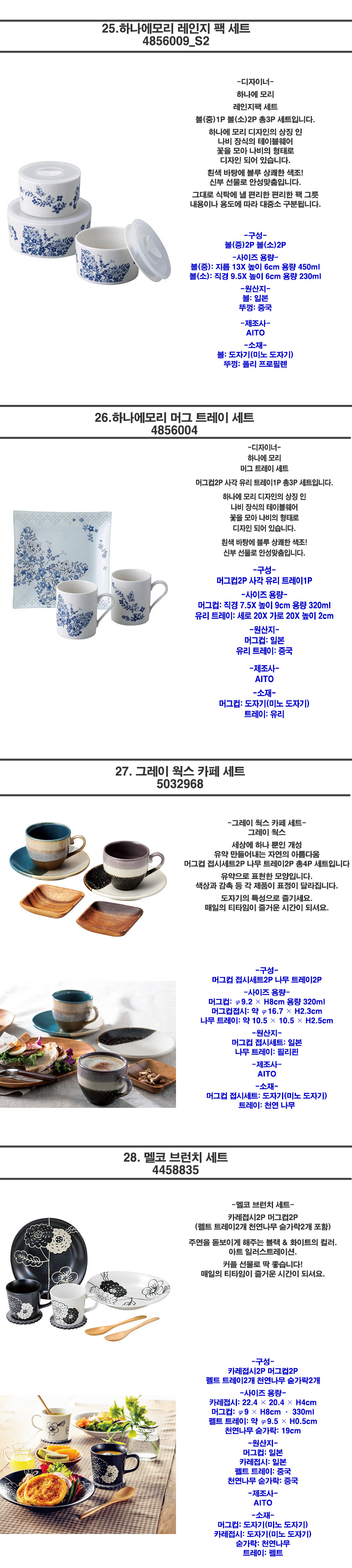 일본 브랜드 디자이너 그릇 세트 특가 모음전 28종!