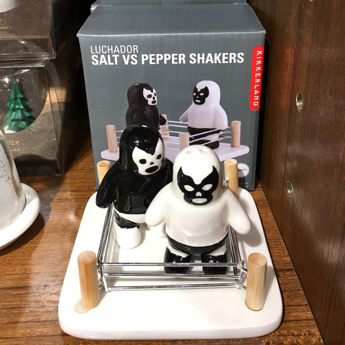 소금통과 후추통, 프로레슬링 링 모양의 받침대가 세트로 구성되어 있으며