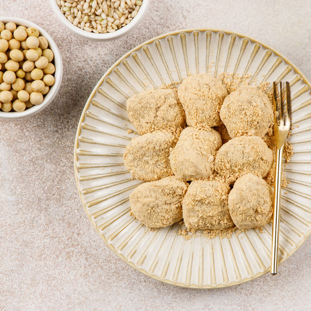 국산콩 100%로 만든 콩고물을 유기농 현미떡에 가득 묻혀 만들었어요.