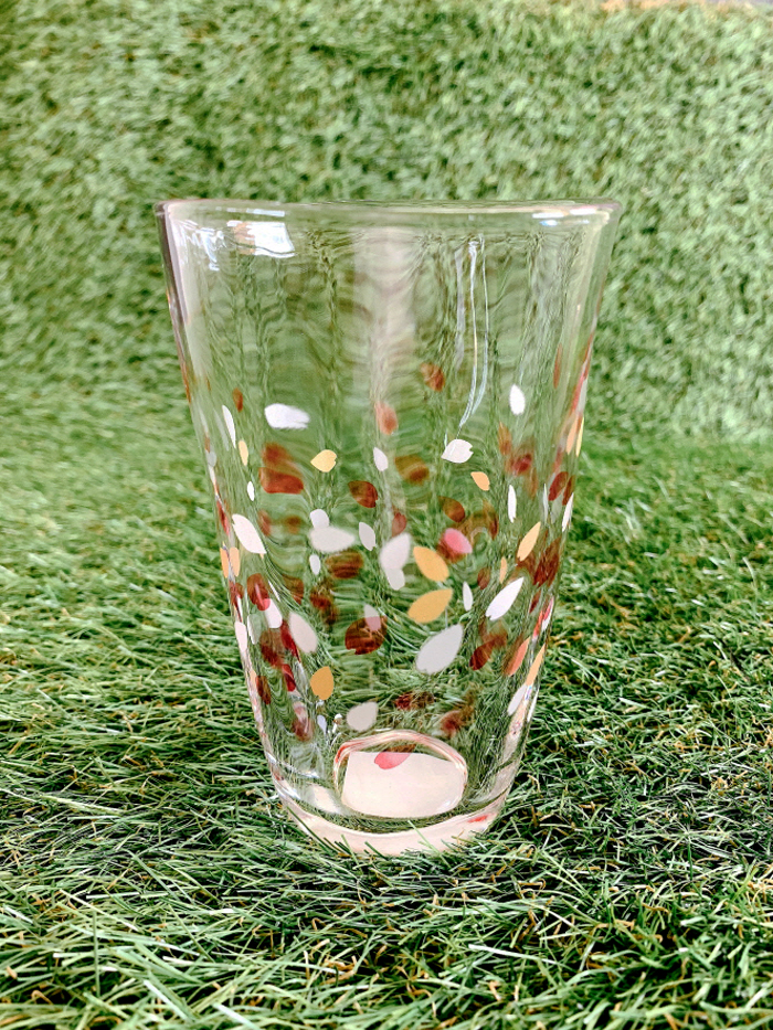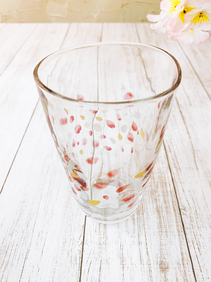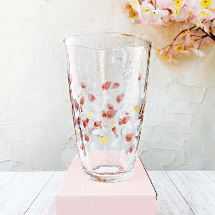 아름답게 흩날리는 벚꽃잎을 새겨 넣은 유리컵입니다~