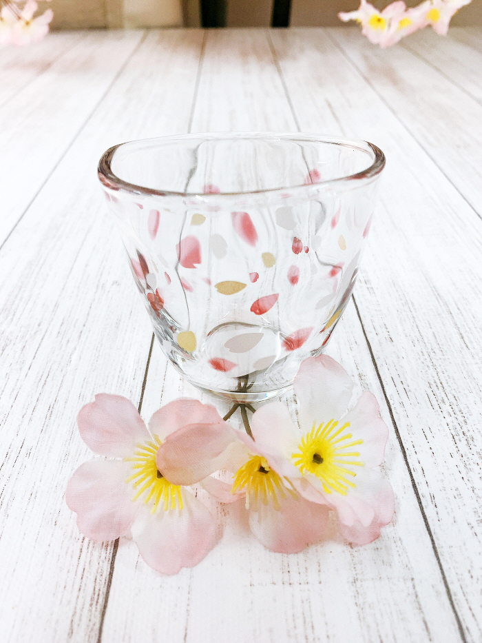 아름답게 흩날리는 벚꽃잎을 새겨 넣은 유리컵입니다~