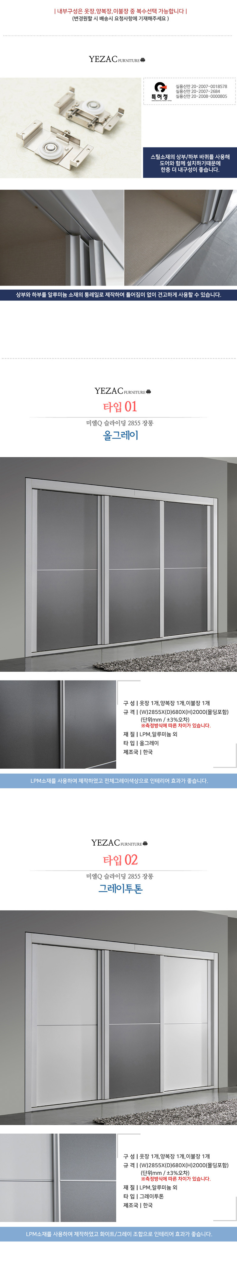 [예작]라인 미엘Q 슬라이딩 2855 장롱/옷장 NP17