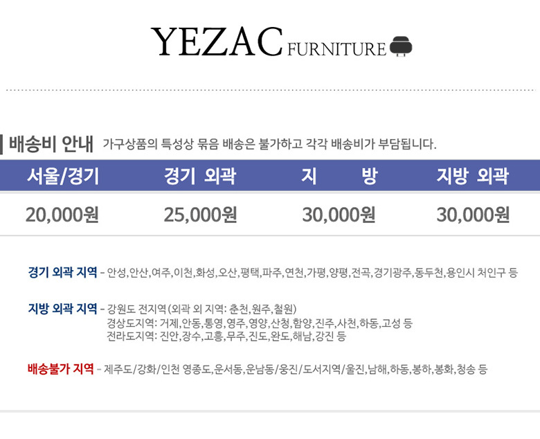 (특히, 가구 등의 상품은 지역에 따라 배송제한 및 추가 배송비용이 착불로 발생할 수 있습니다.)