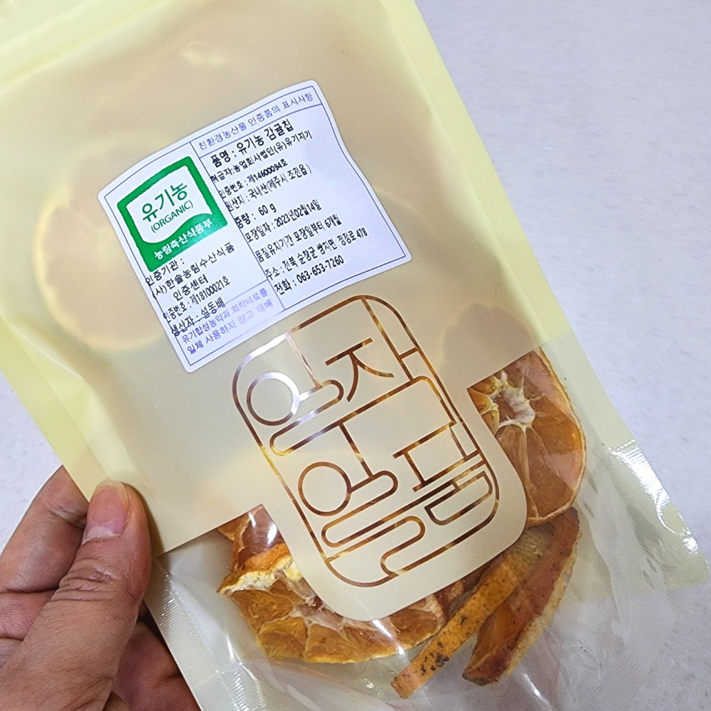 | 품목 또는 명칭 | 유기농 제주 감귤칩 60g 건감귤 과일칩 주전부리 무설탕 건강간식 |