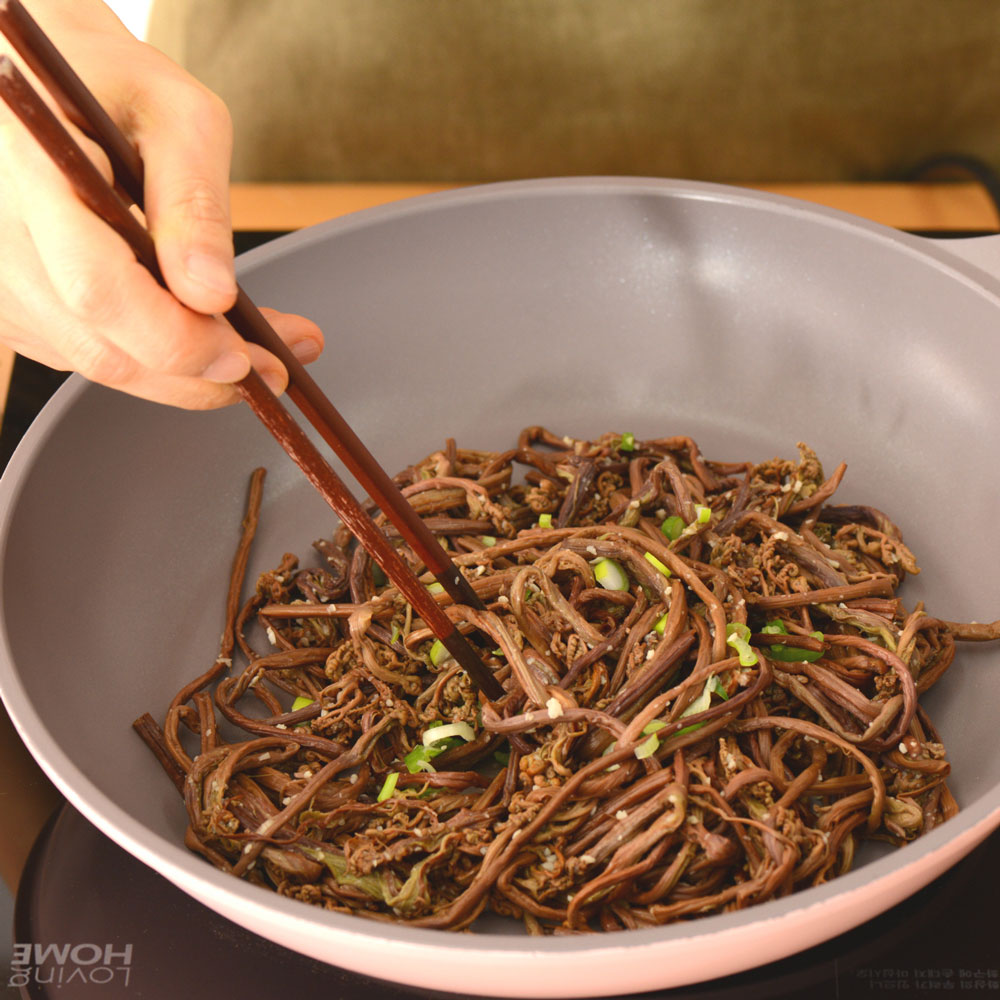 (중간중간 뚜껑을 덮어 주세요.수분이 날아가지 않아 촉촉하면서 부드러운 고사리볶음이 된답니다.)