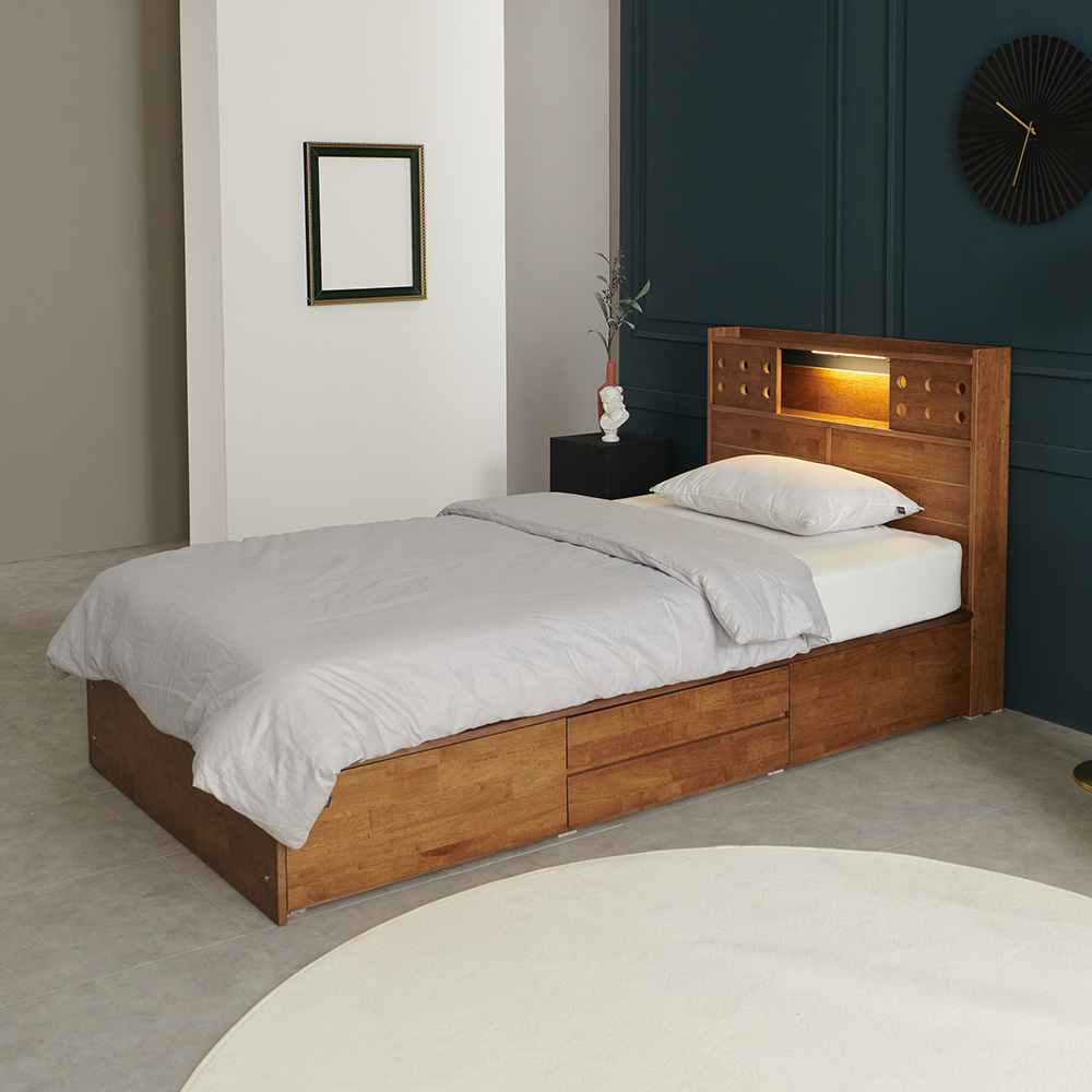 | 품명 | 첼로 고무나무 원목 LED 수납 슈퍼싱글 침대 |