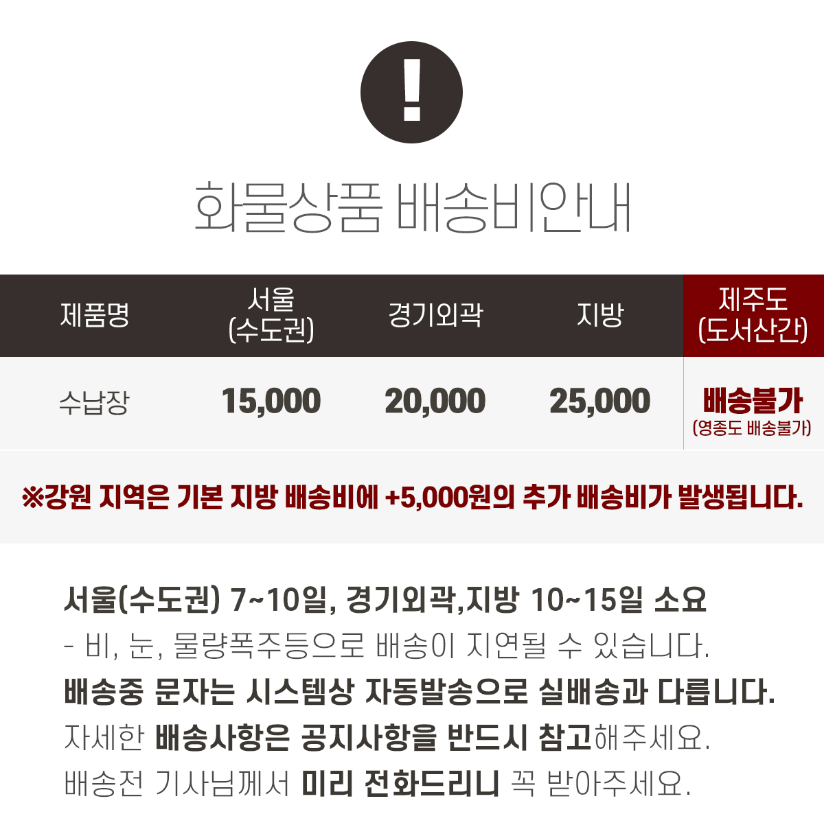| 배송비용 | 착불 (상품상세설명참조) |