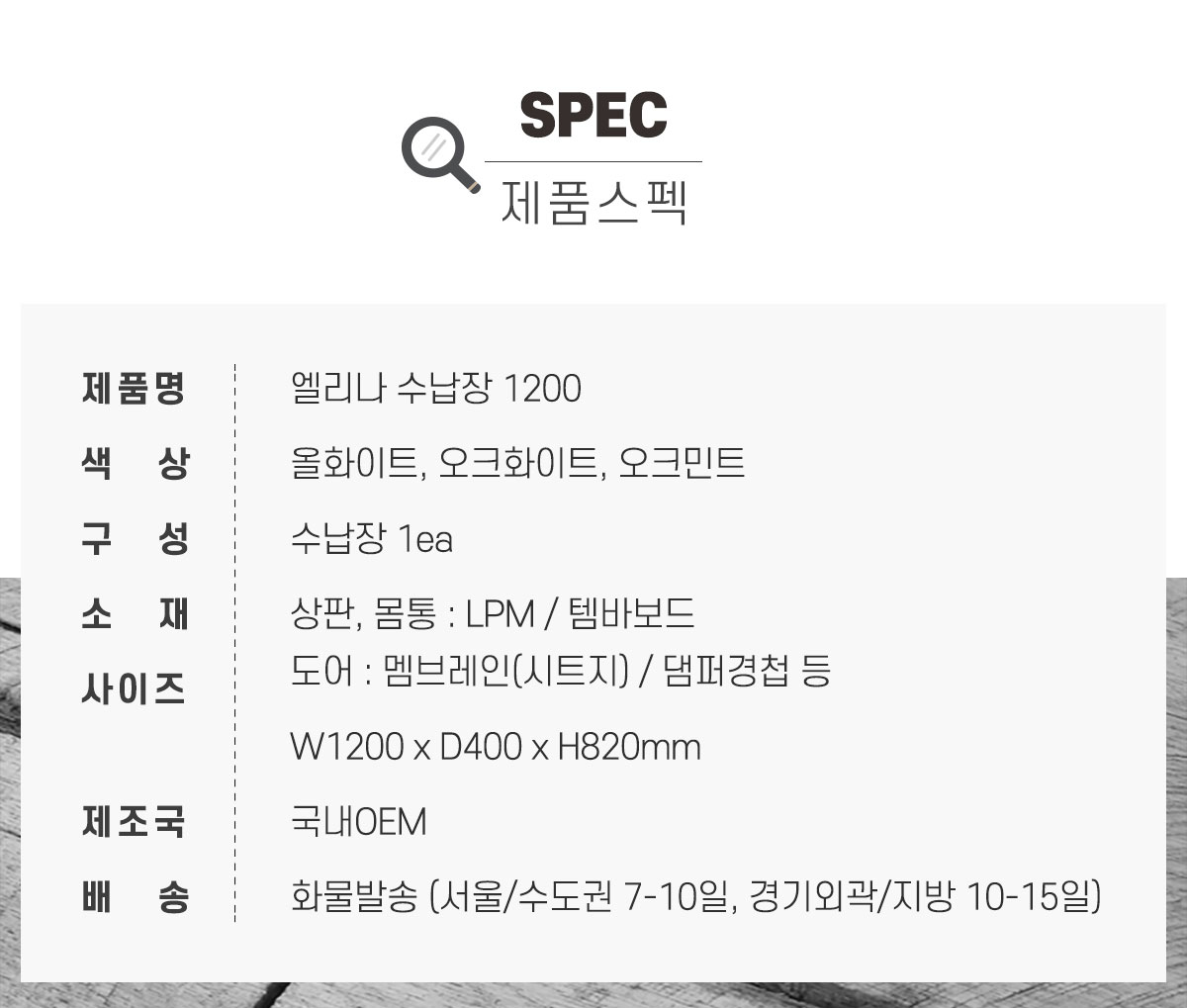| 크기 | W1200 x D400 x H820mm |