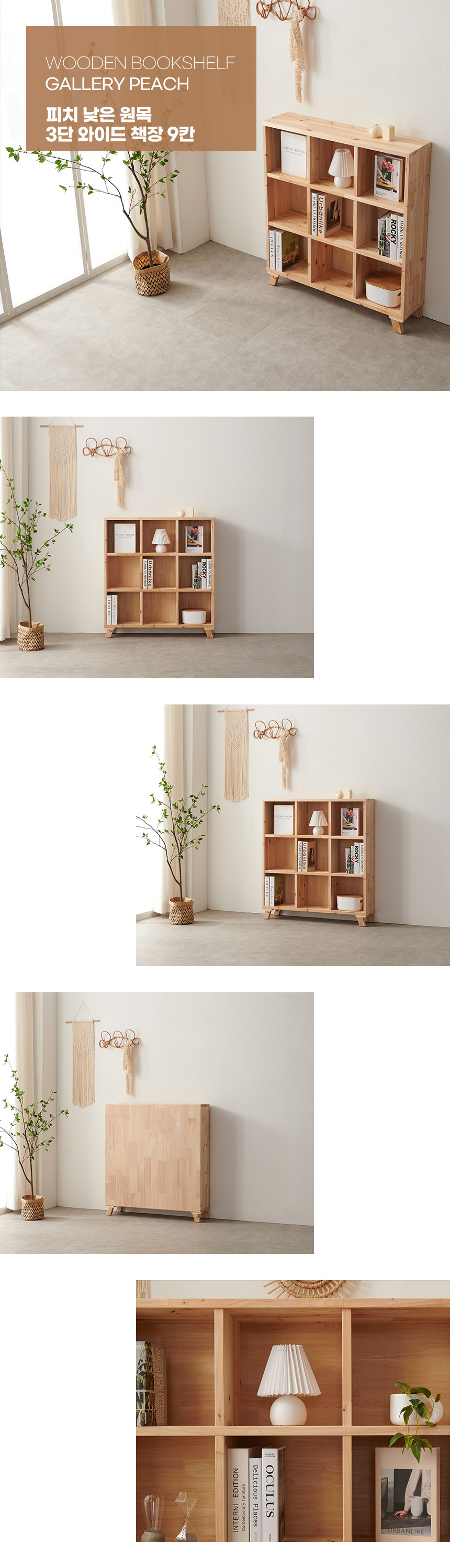 | 품명 | 피치 낮은 원목 3단 와이드 책장 9칸 |