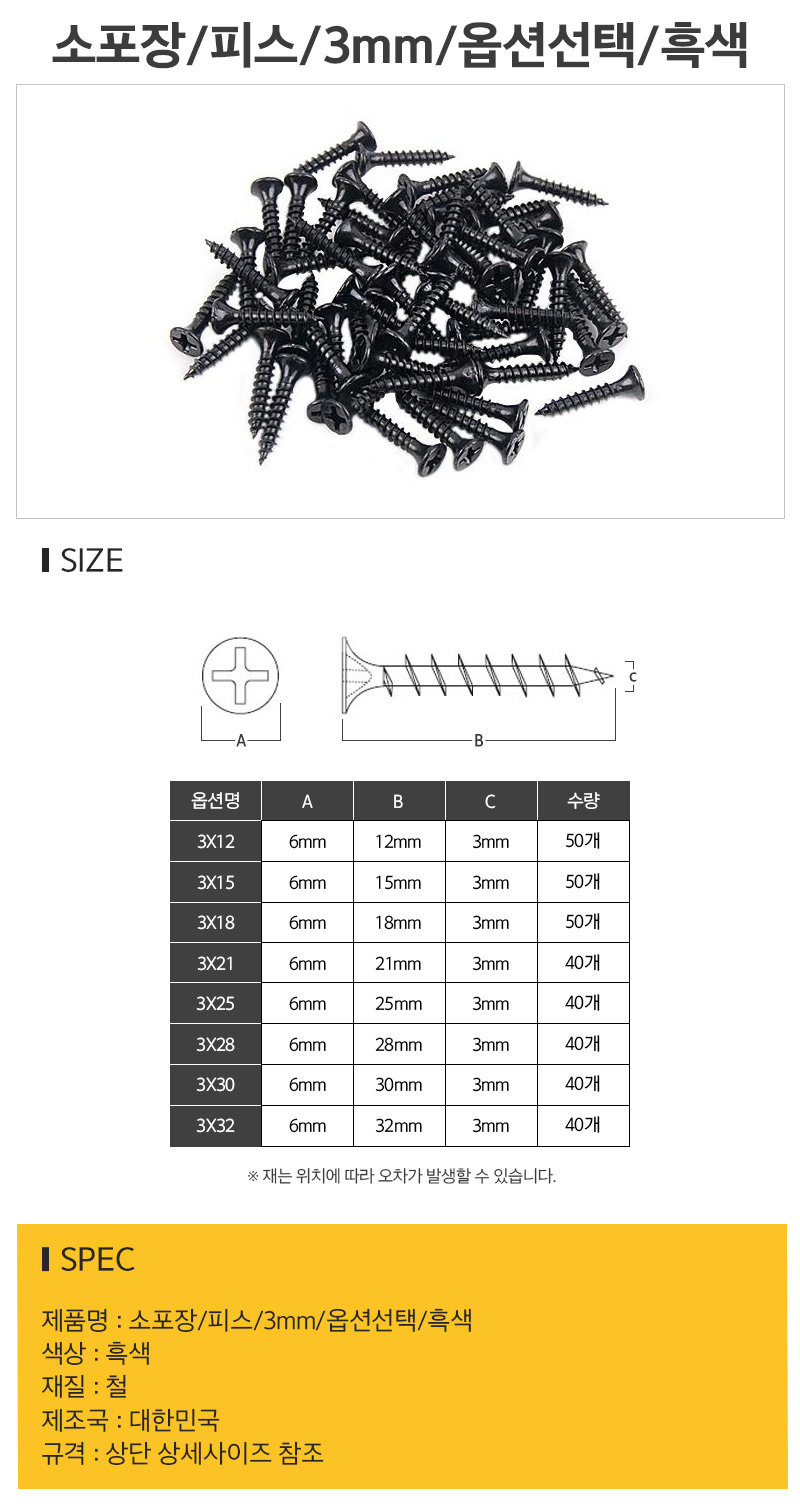 [바이핸즈]소포장/피스/3mm/옵션선택/흑색