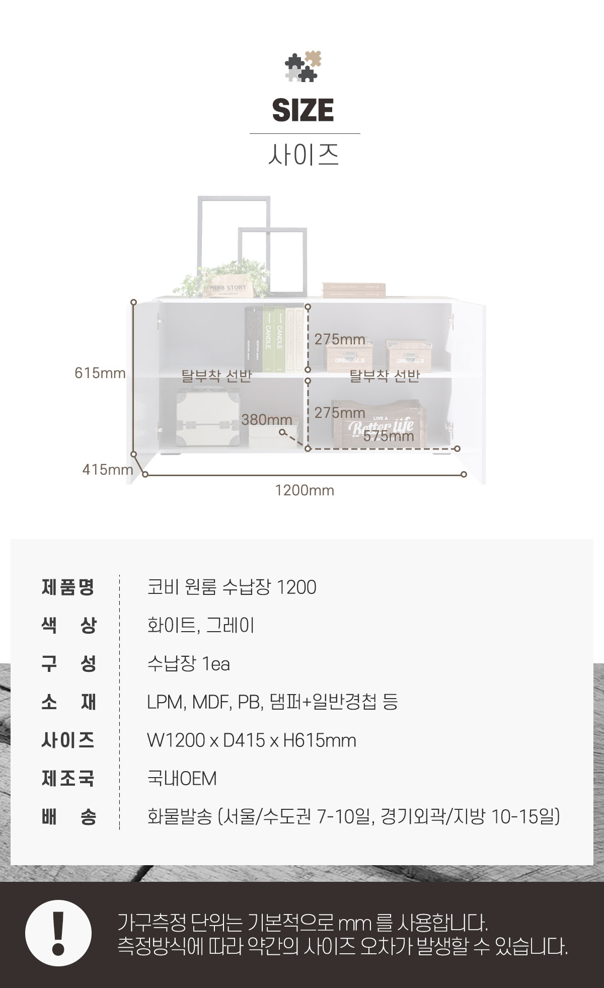 | 크기 | W1200 x D415 x H615mm |