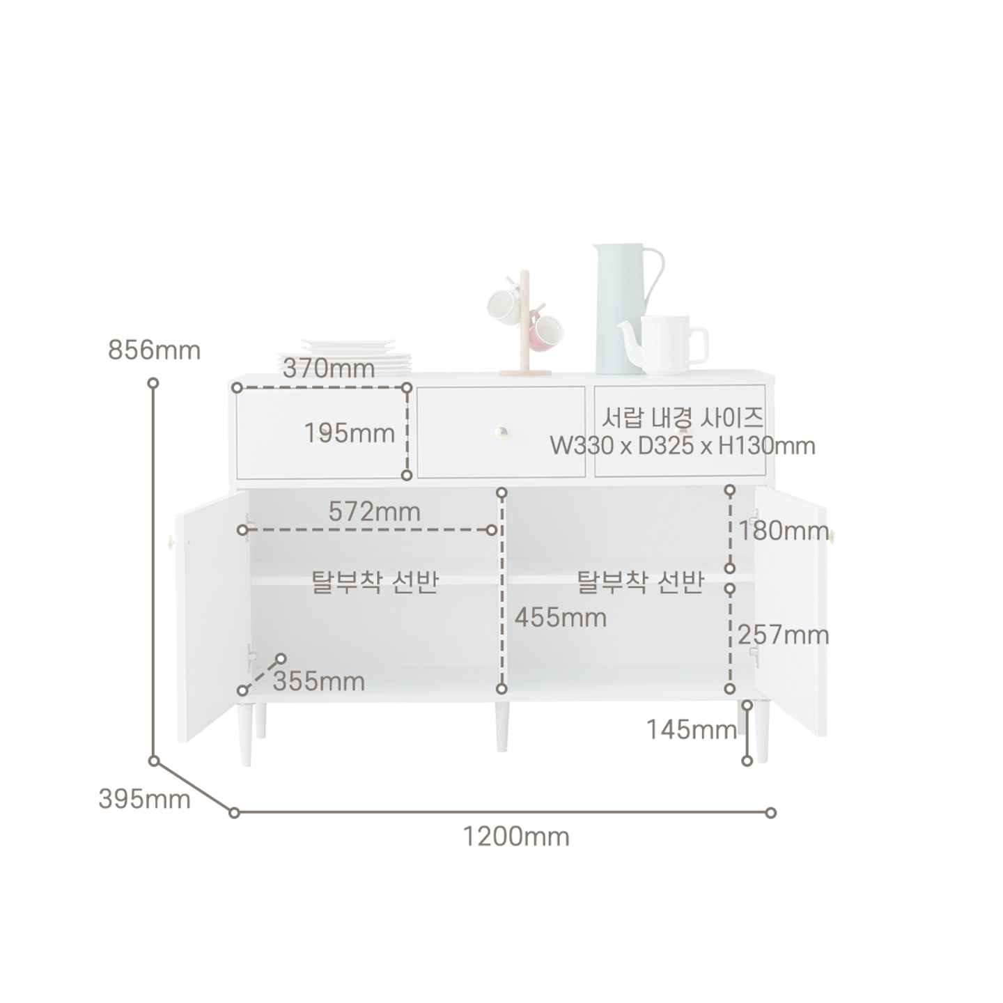 | 크기 | W1200 x D395 x H856mm (다리별도높이 145mm) |
