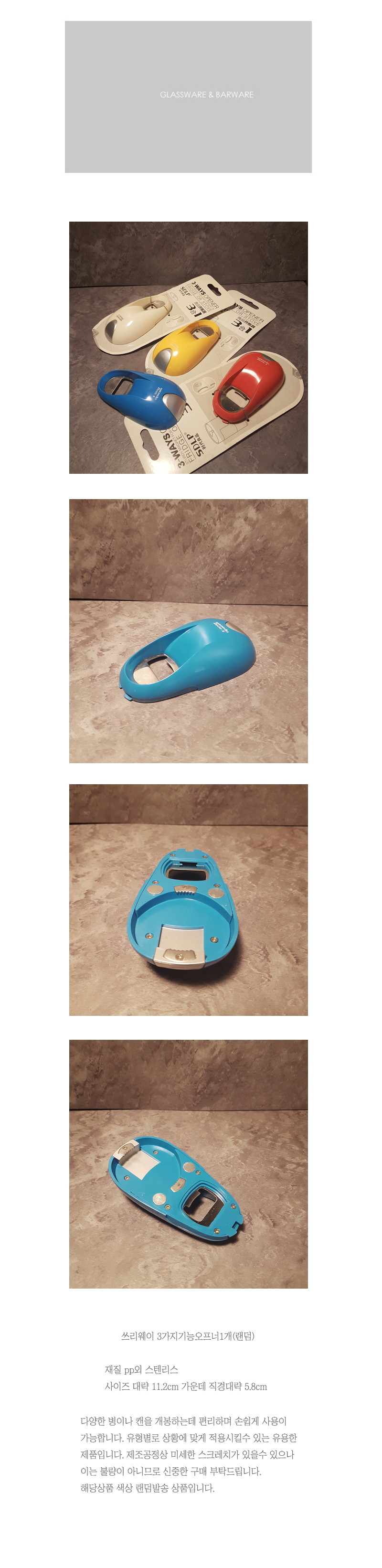 | 품명 및 모델명 | 쓰리웨이 3in1 오프너 1개(색상랜덤) |