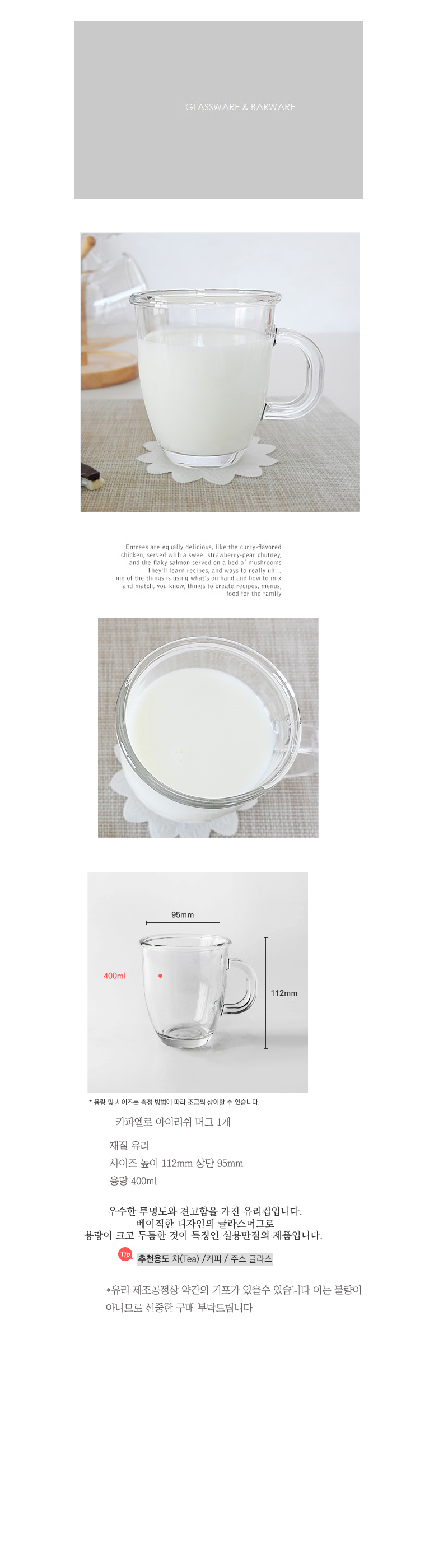 | 크기 | 높이112mm 상단95mm / 용량400ml |