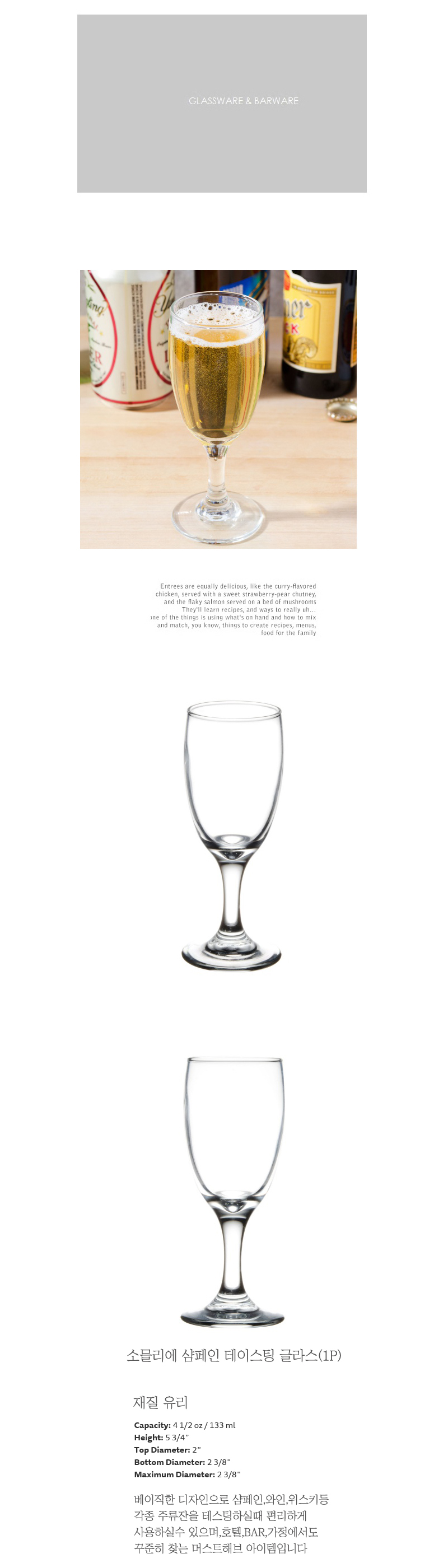 | 품명 및 모델명 | 소믈리에 샴페인 테이스팅 글라스(1P) |