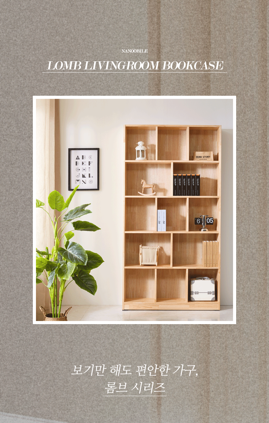 | 품명 | 롬브 거실 원목 5단 와이드 책장 1000 |