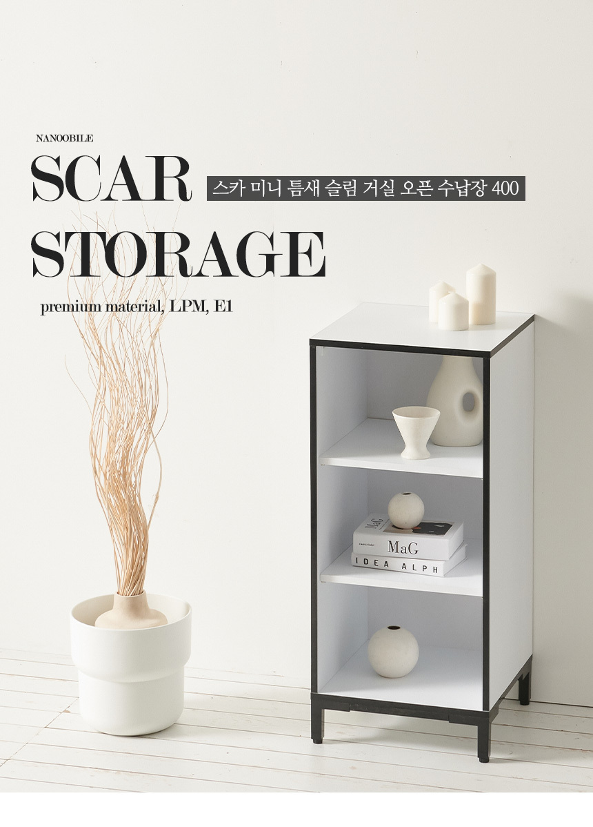 | 품명 | 스카 미니 틈새 슬림 거실 오픈 수납장 400 |