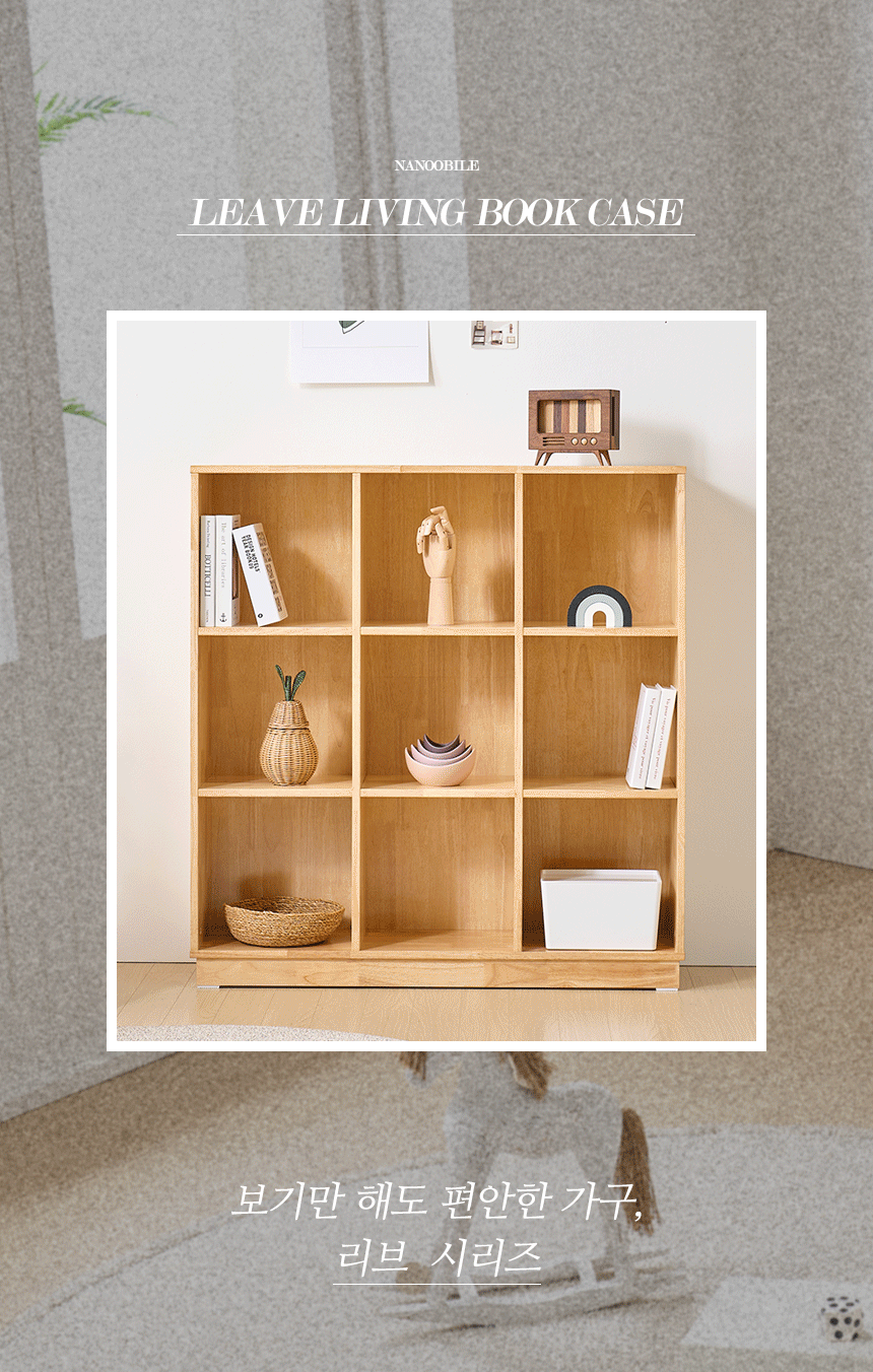 | 품명 | 리브 원목 다용도 틈새 거실 책장 3단 9칸 |
