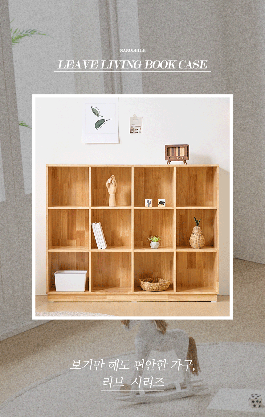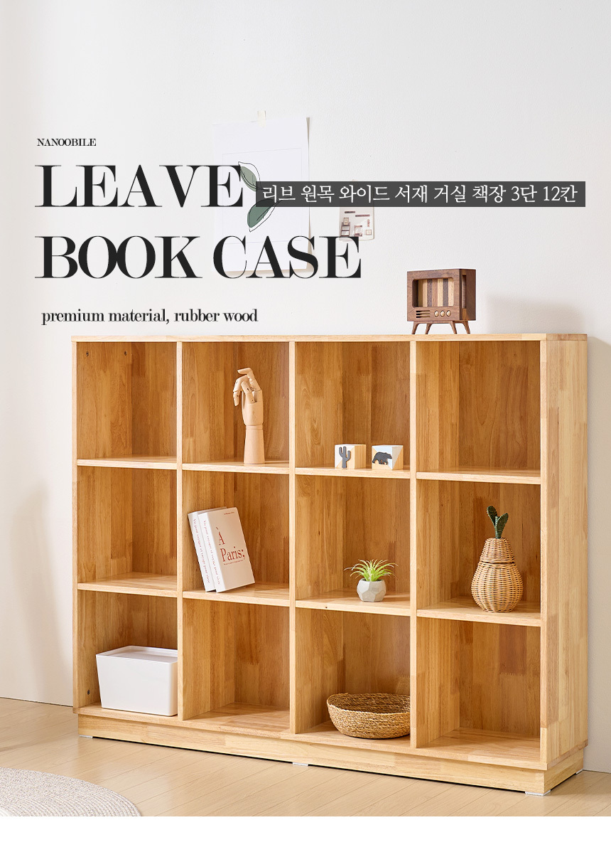 | 품명 | 리브 원목 와이드 서재 거실 책장 3단 12칸 |