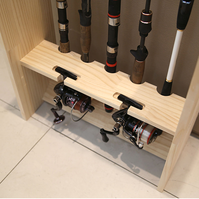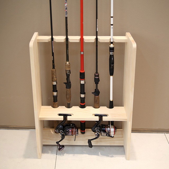 | 품명 | 원목 낚시대 거치대-5구+릴 거치대 |