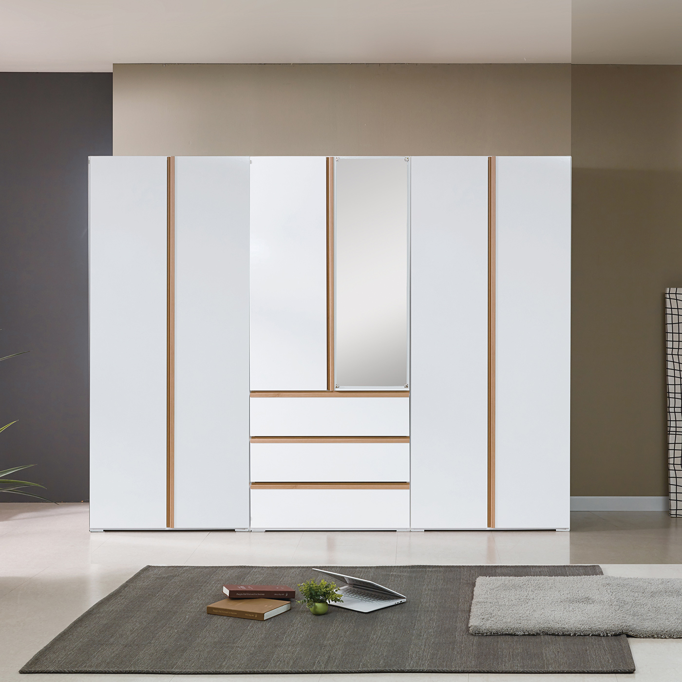 [모로]보더 LPM 9자 거울 장롱세트 3서랍 옷장 장롱 서랍옷장 긴옷장