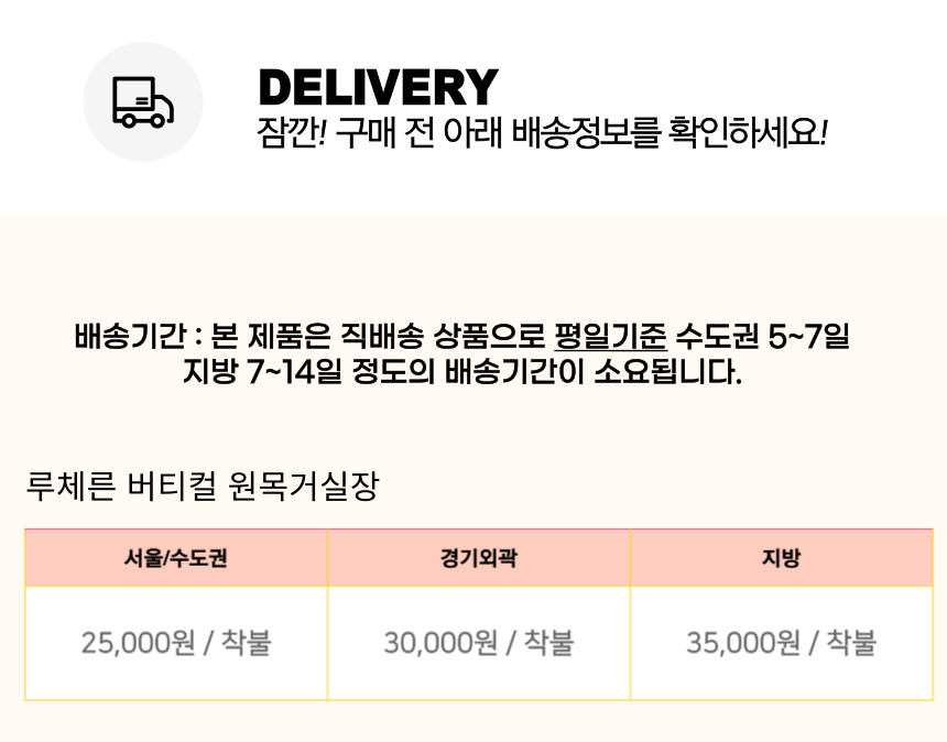 | 배송방법 | 퍼플뉴퍼니처 브랜드는 직접 배송을 원칙으로 합니다. |