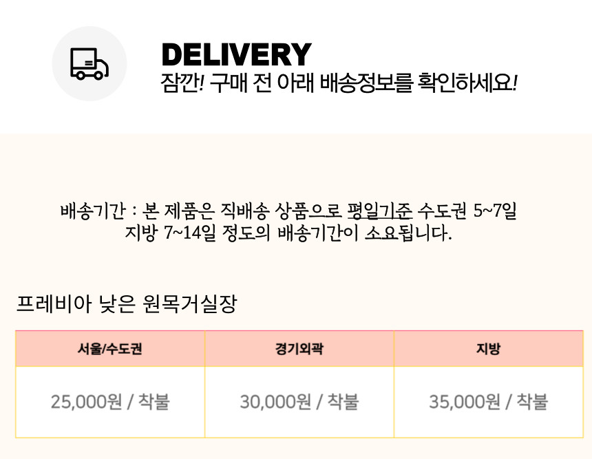 | 배송방법 | 퍼플뉴퍼니처 브랜드는 직접 배송을 원칙으로 합니다. |