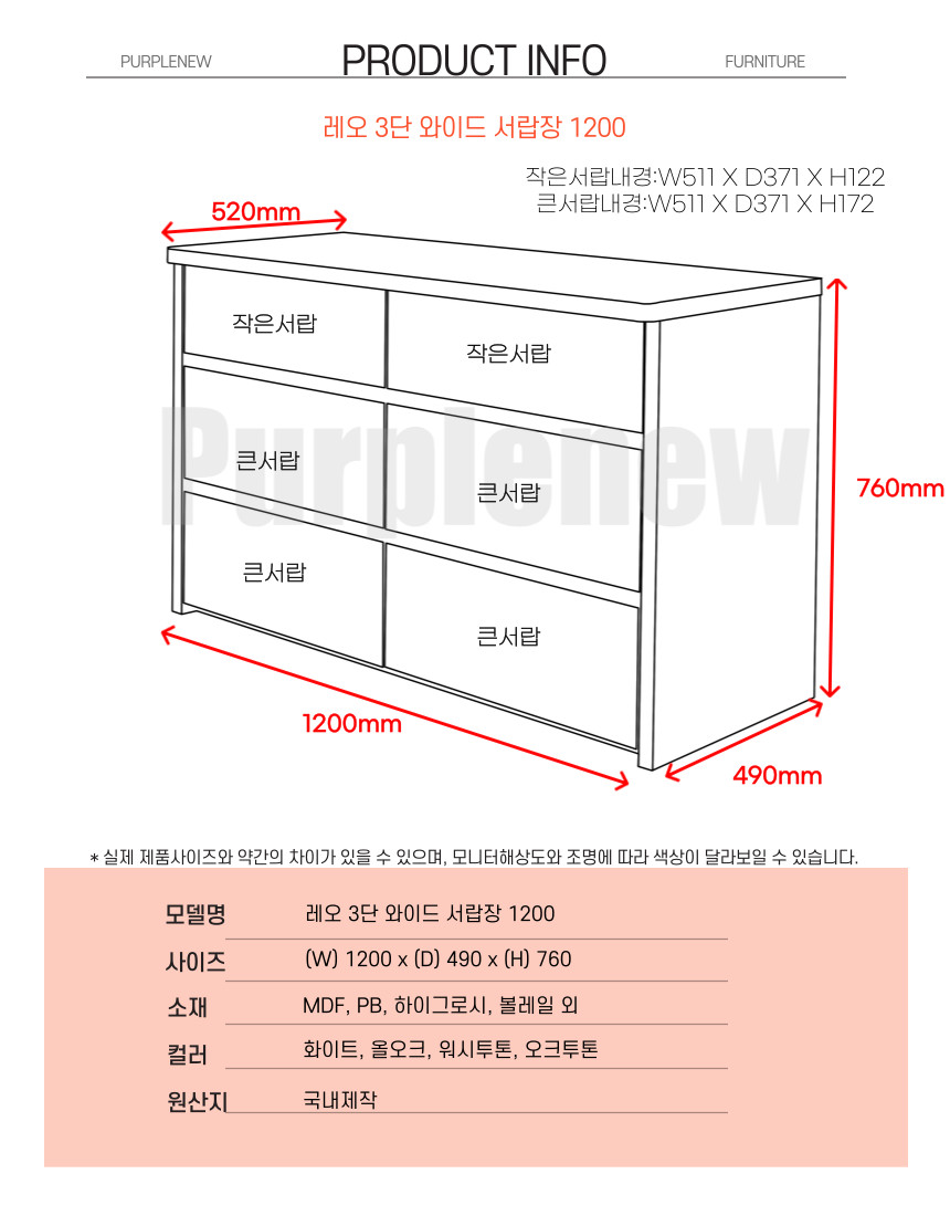 | 품명 | 레오 와이드3단 서랍장 1200 |