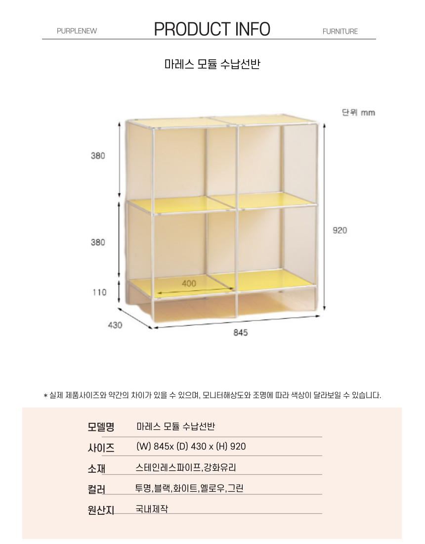 | 크기 | 가로 845 세로 430 높이920mm |