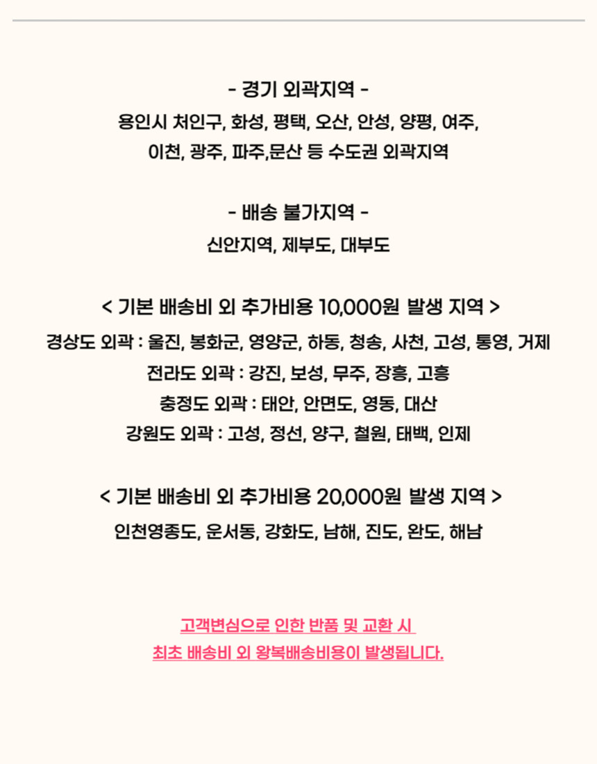 | 교환배송비 | 고객센터(01025558184)로 문의해주세요. |