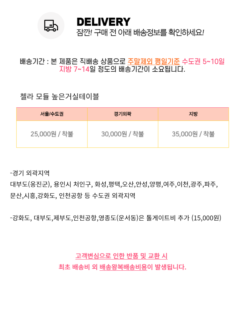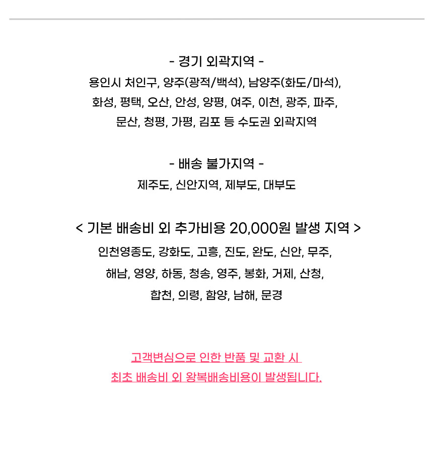 | 교환배송비 | 고객센터(01025558184)로 문의해주세요. |