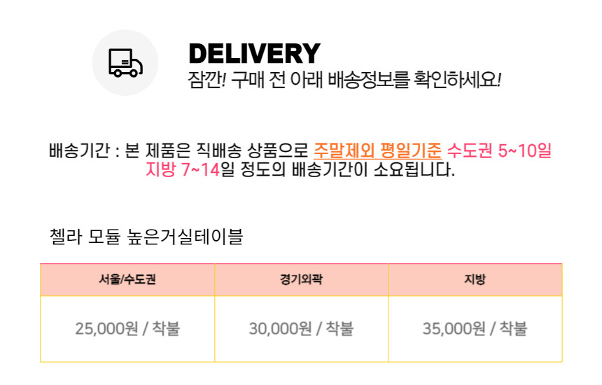 | 배송방법 | 퍼플뉴퍼니처 브랜드는 직접 배송을 원칙으로 합니다. |