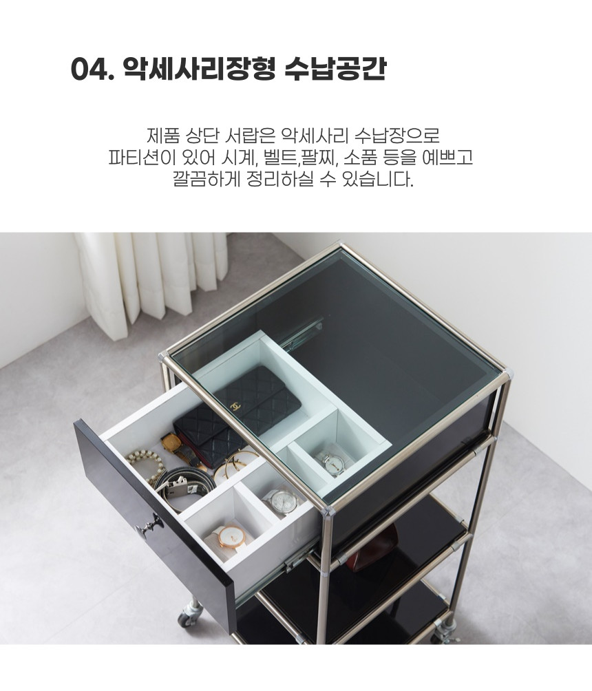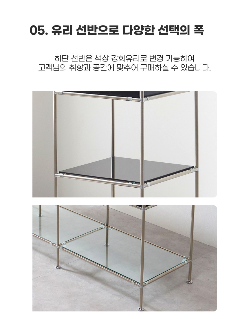 | 색상 | 화이트,옐로우,블랙 / 선반 유리 색상 - 목재선반,투명,화이트,옐로우,블랙 |
