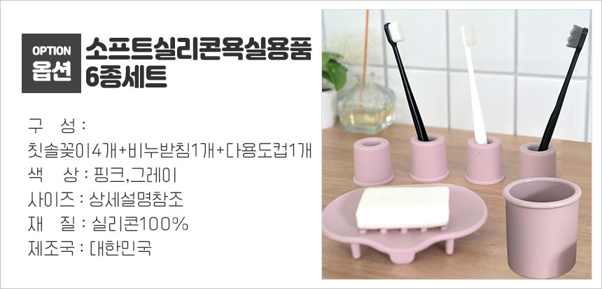 | 품명 및 모델명 | 소프트실리콘욕실용품6종세트(칫솔꽂이4개+비누받침1개+다용도컵1개) |