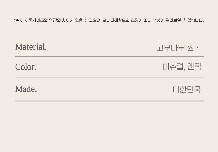 | 주요 소재 | 고무나무 원목 |