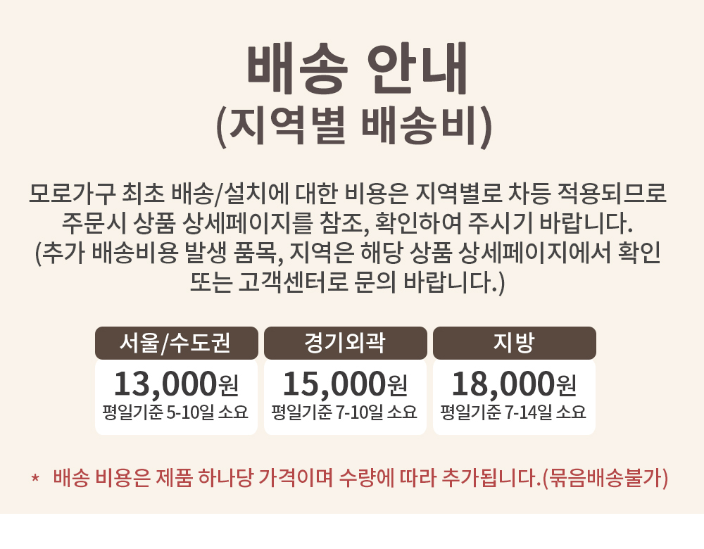 (특히, 가구 등의 상품은 지역에 따라 배송제한 및 추가 배송비용이 착불로 발생할 수 있습니다.)