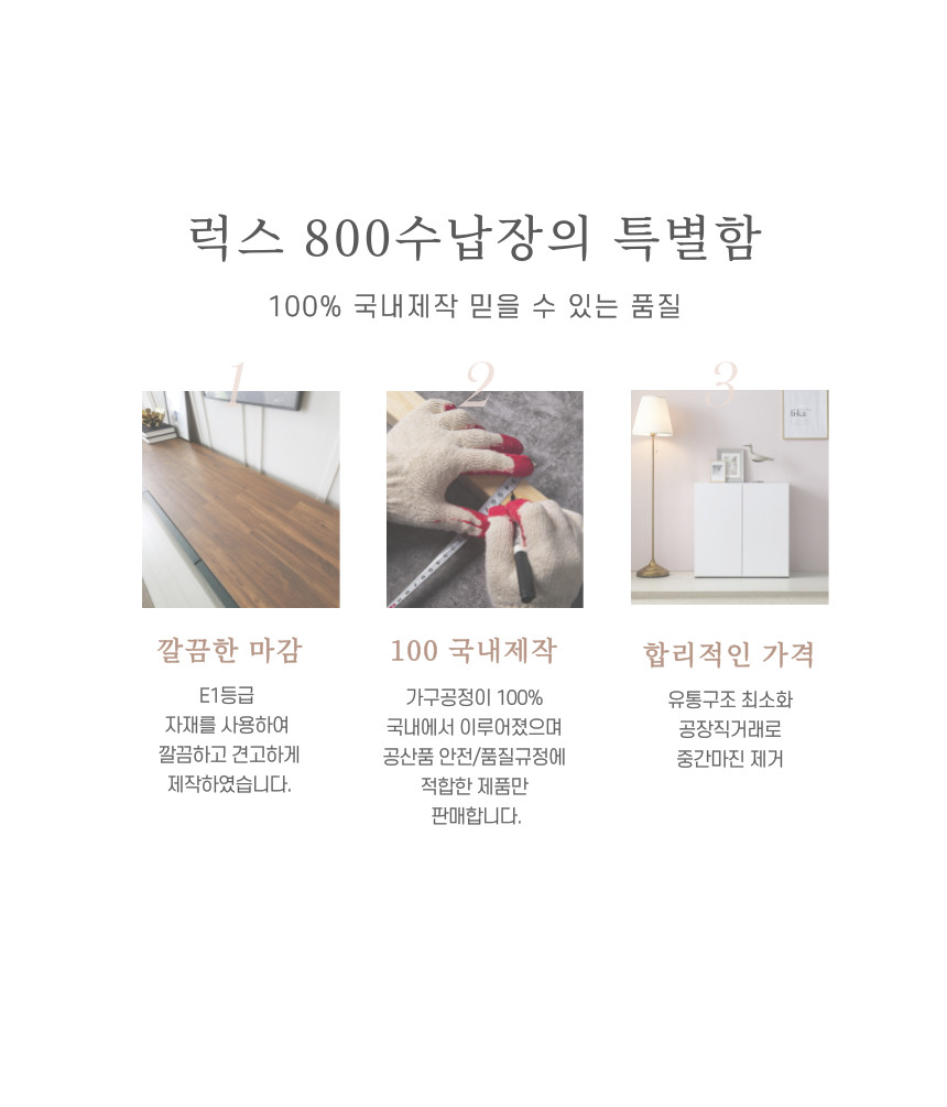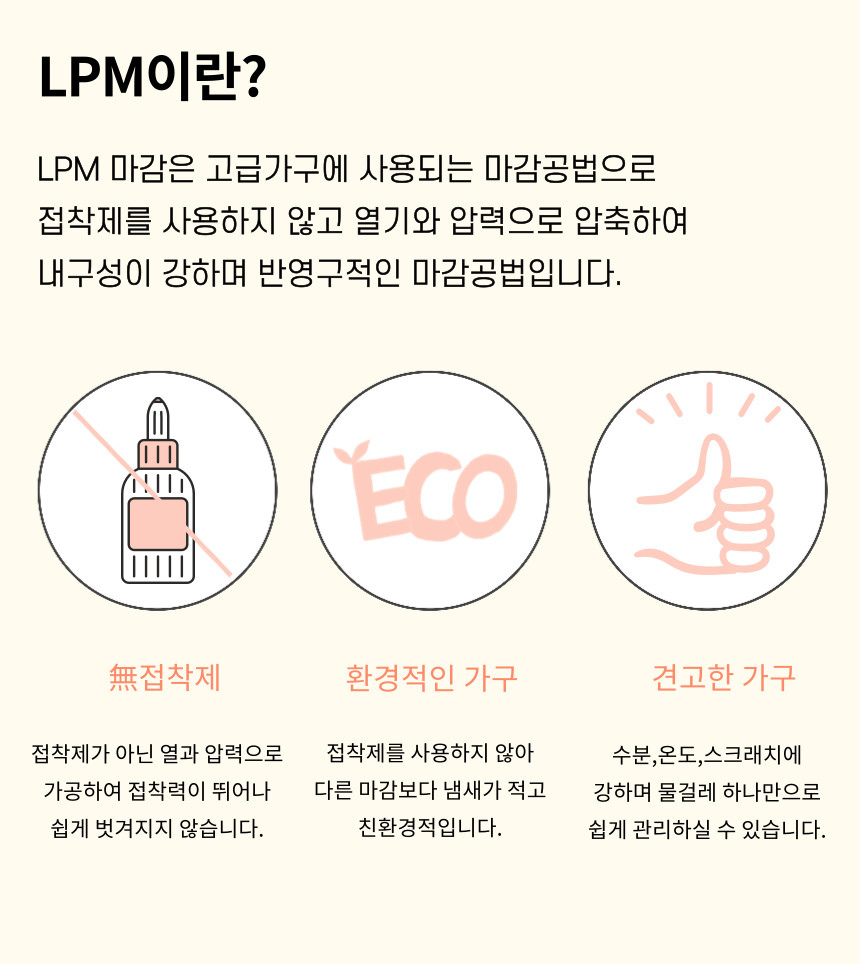 | 주요 소재 | MDF,PB,LPM, 뎀퍼경첩 외 |