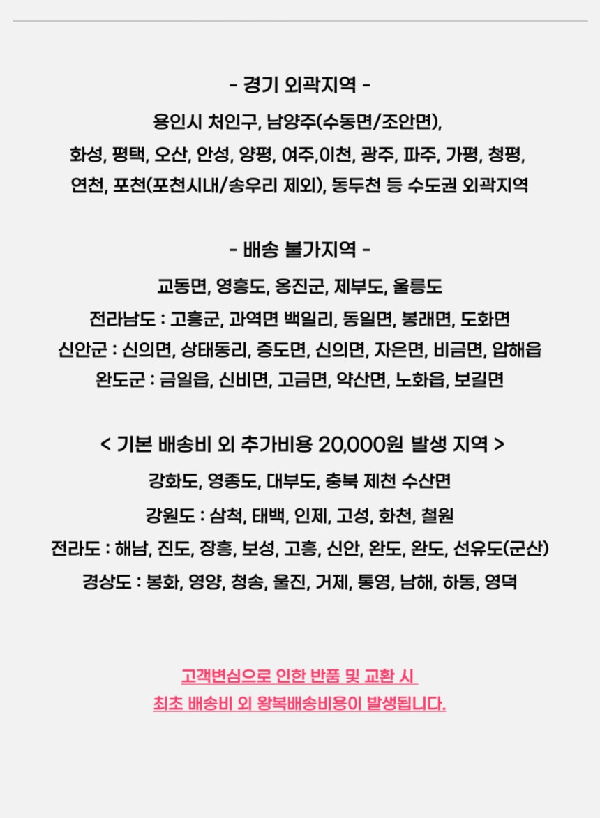 | 교환배송비 | 고객센터(01025558184)로 문의해주세요. |