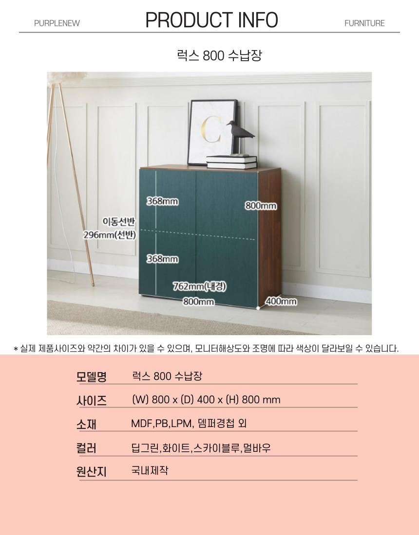 | 색상 | 딥그린,화이트,스카이블루,멀바우 |