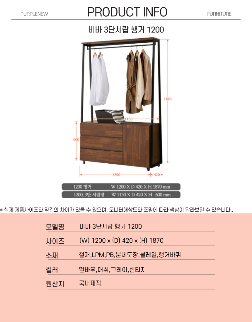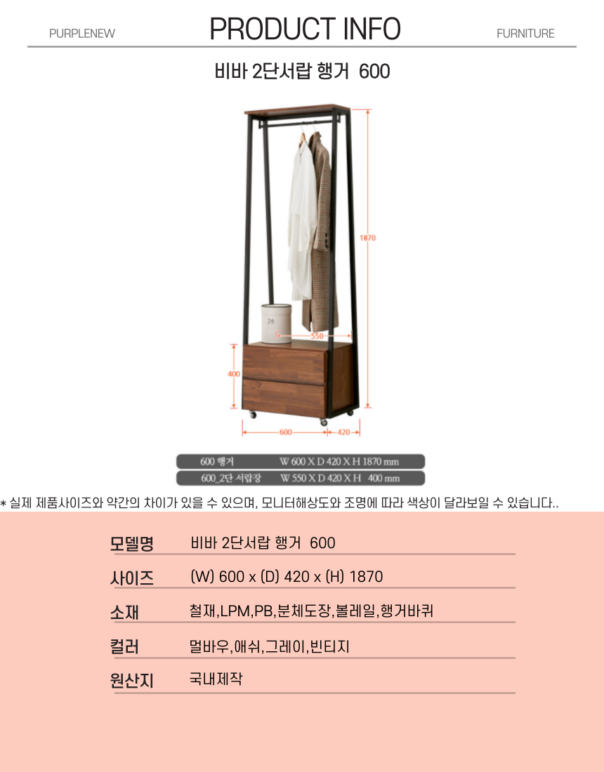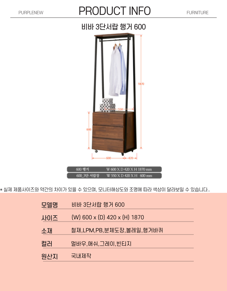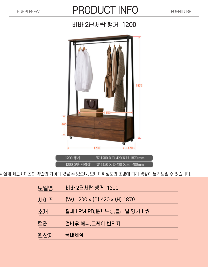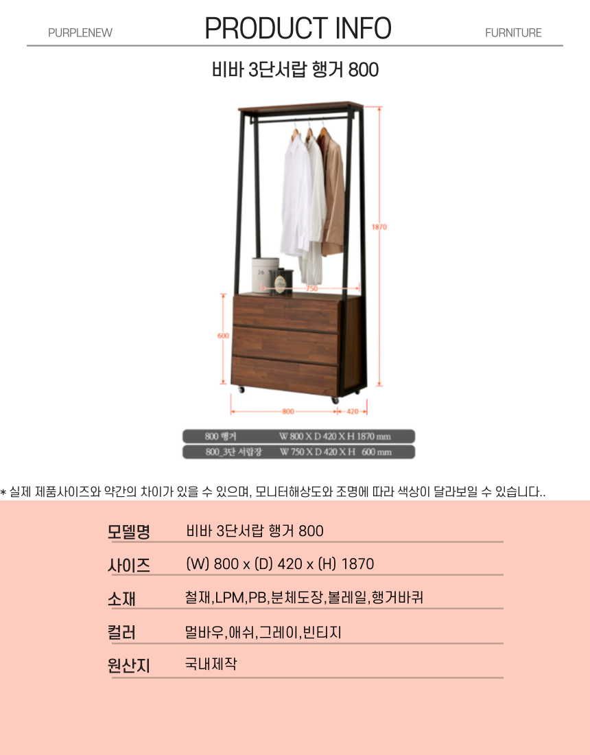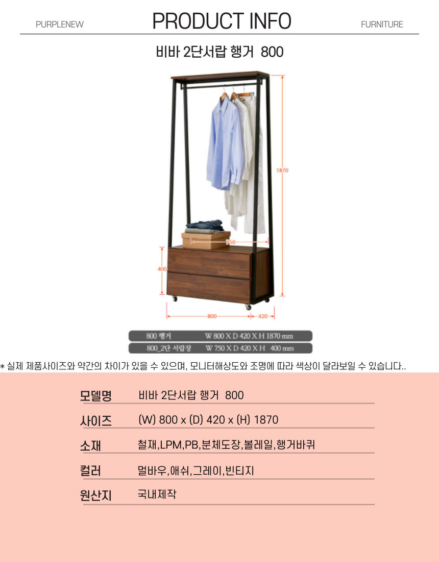 | 주요 소재 | 철재, LPM,PB,분체도장,볼레일, 행거바퀴 |