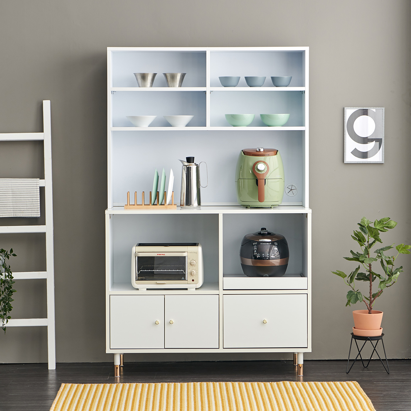 [모로]보니타 1060 광파오븐 와이드 렌지대 전자렌지 수납장 상부장 세트 밥솥