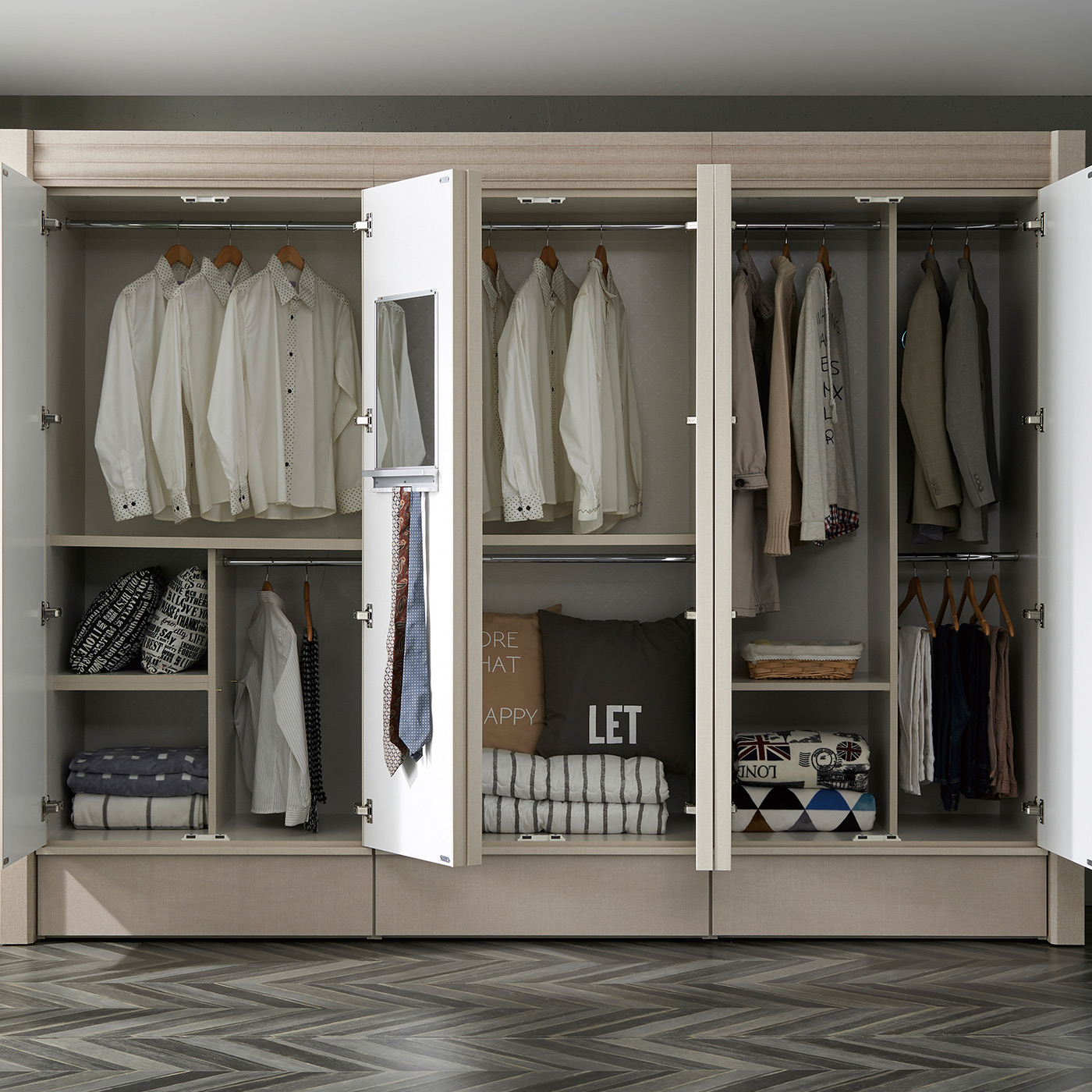 [모로]리암 투톤 패브릭 10자 서랍 장롱세트 옷장 장롱 장농 이불장 수납장
