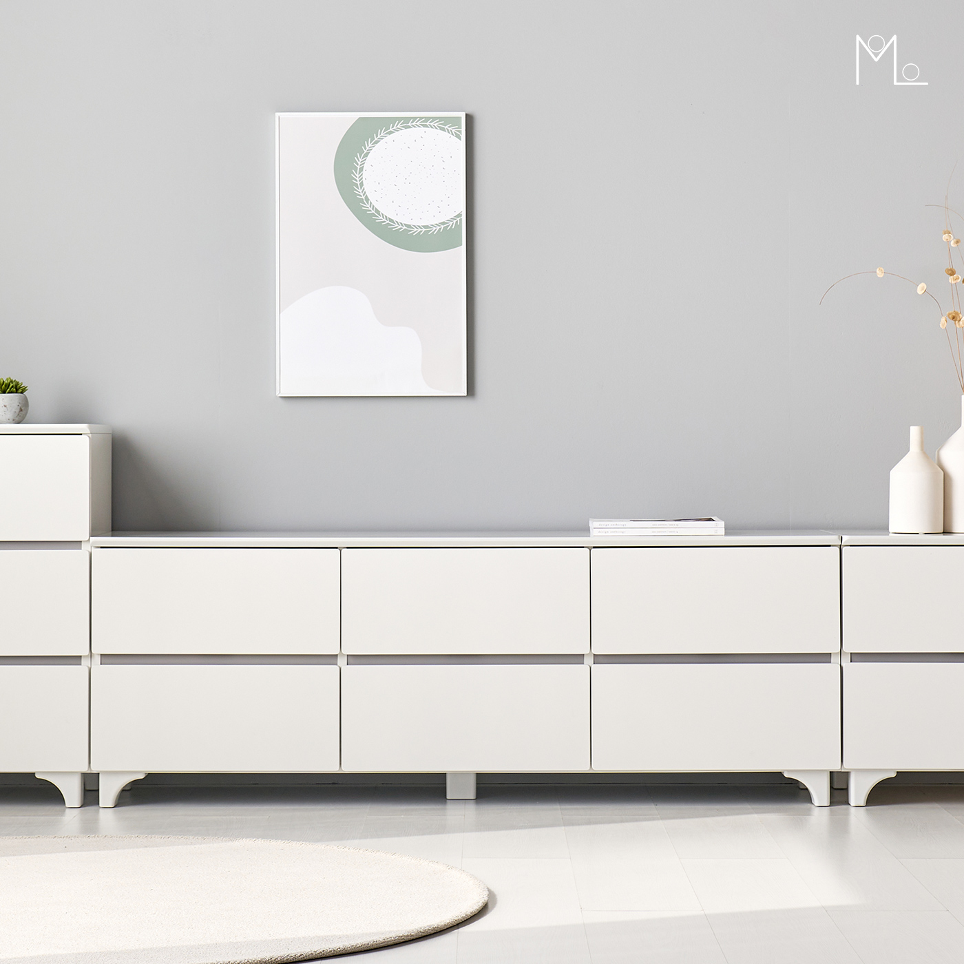 거실장은 바닥보단 한톤 진한색을 놓는 것을 추천 해드립니다. 바닥 색상이 어두운데 밝은 색상 거실장을 배치한다면 언발란스 하며 러그나 카펫으로 보완하는 것도 하나의 방법 입니다.