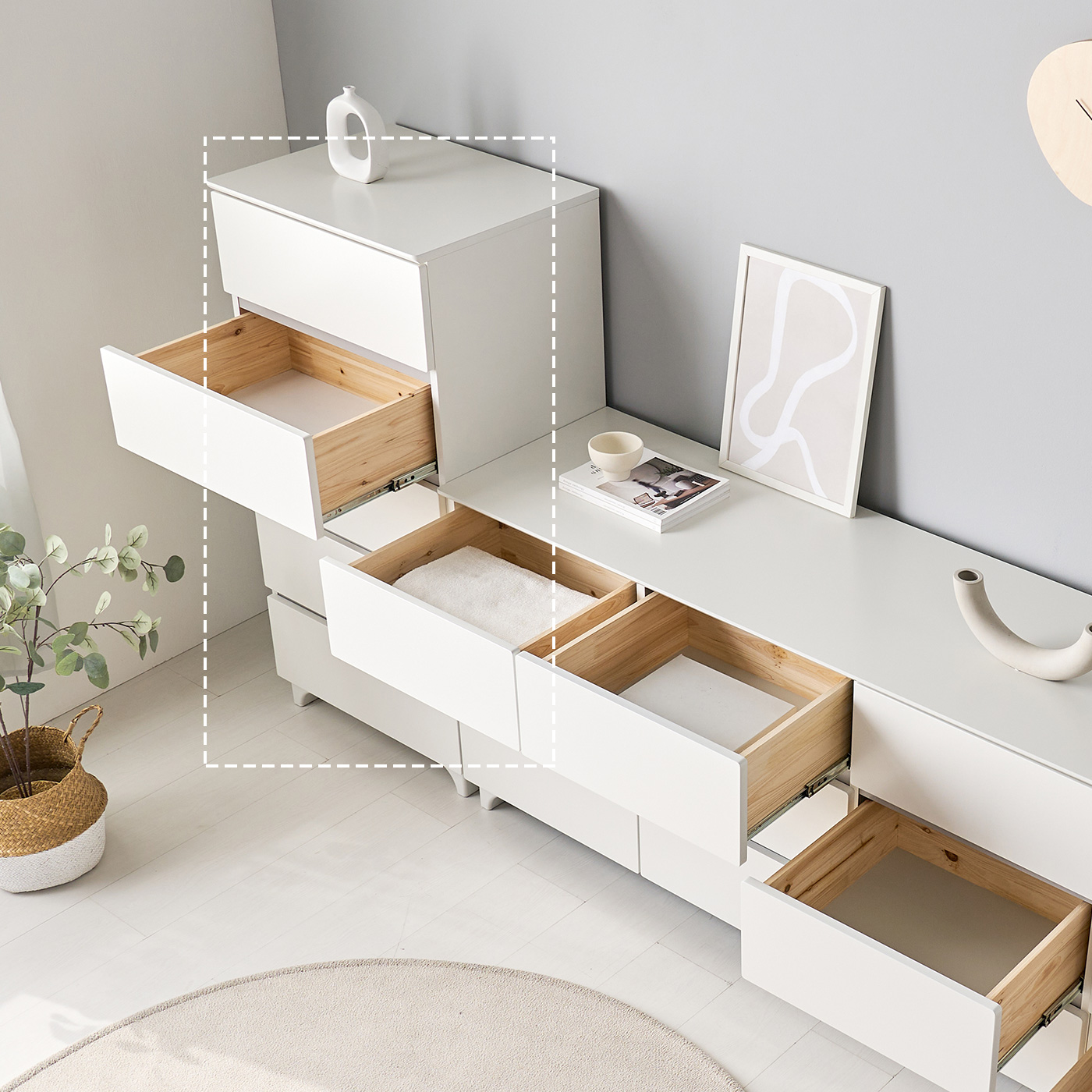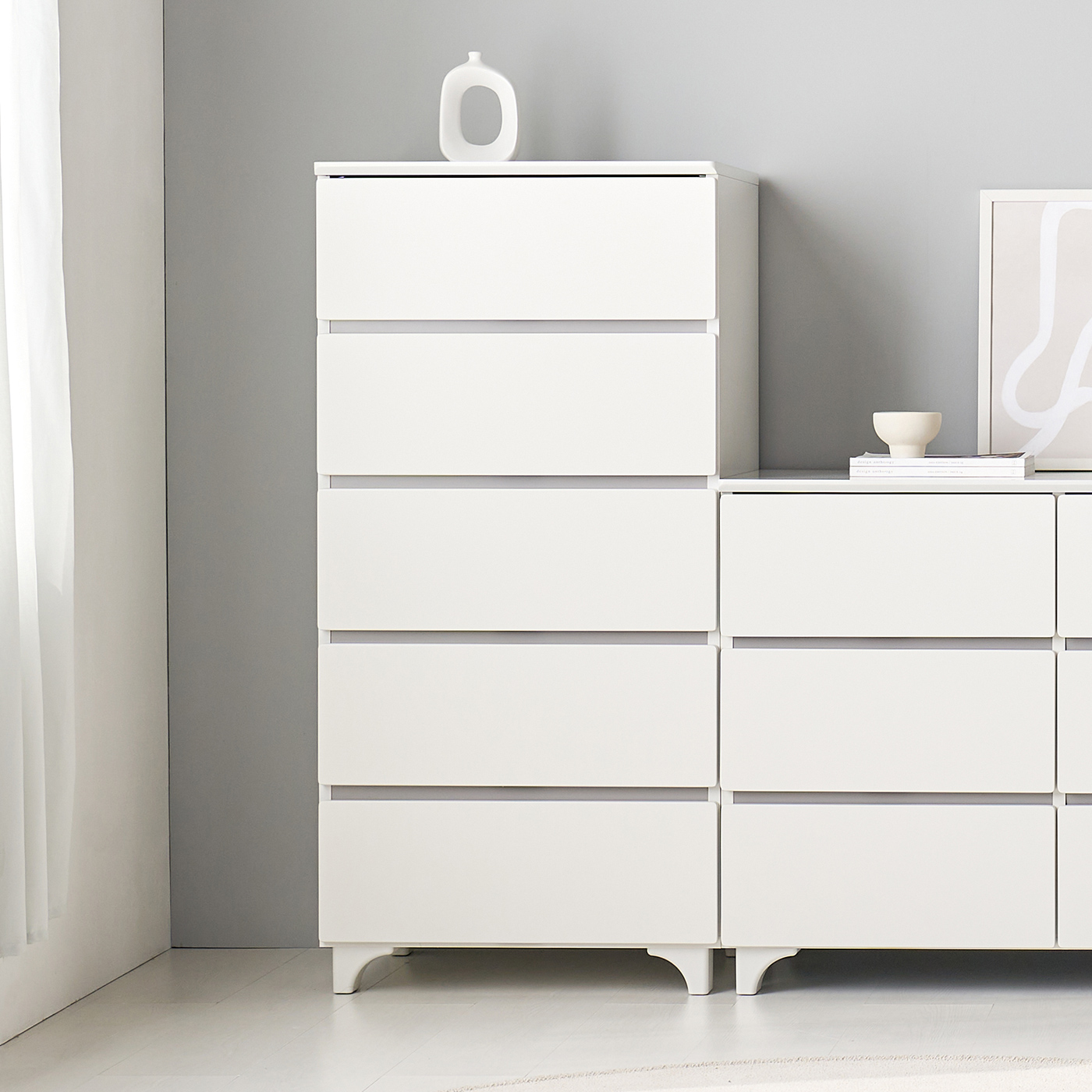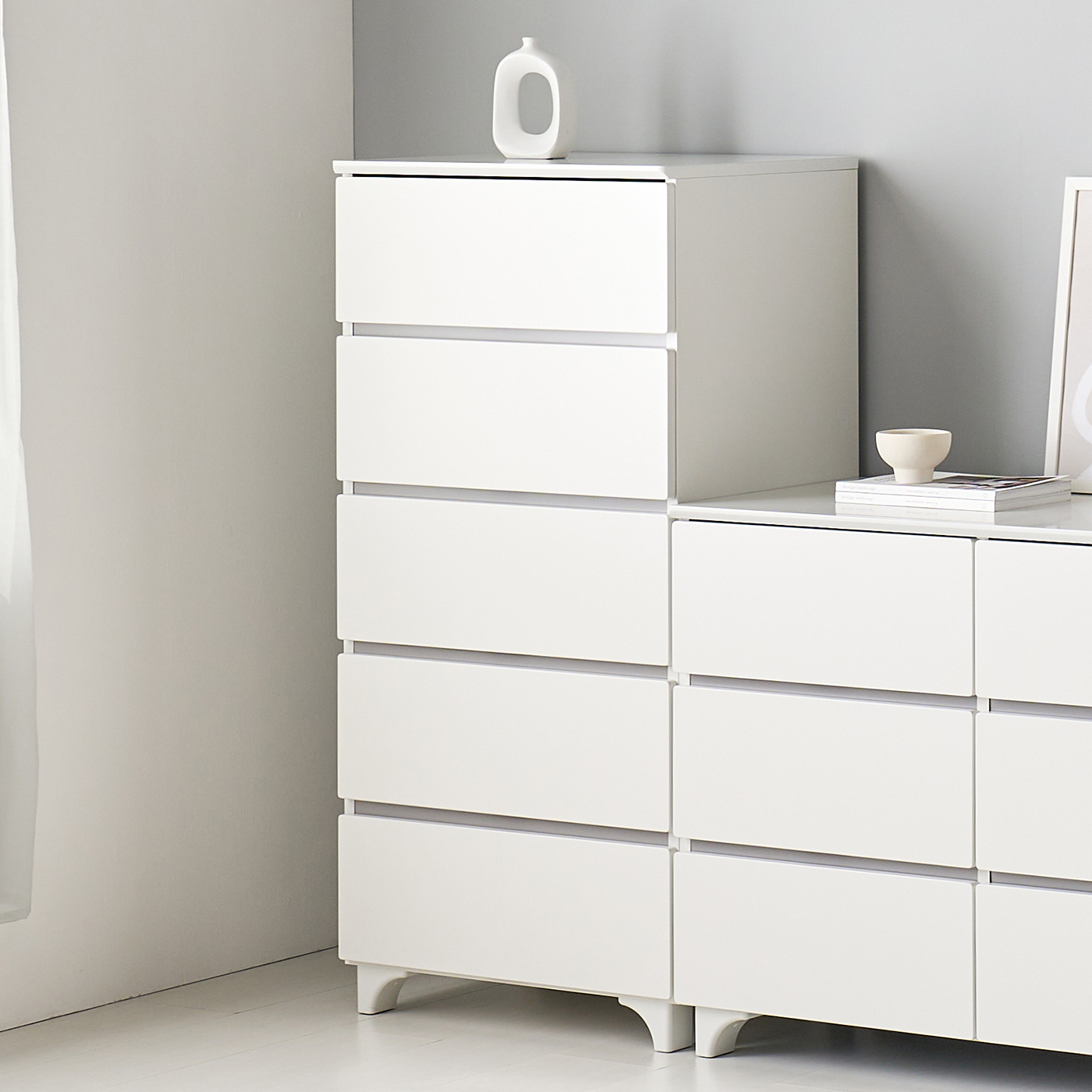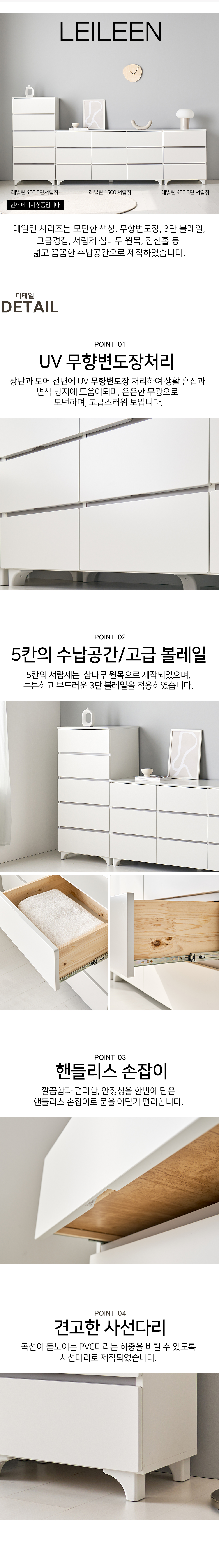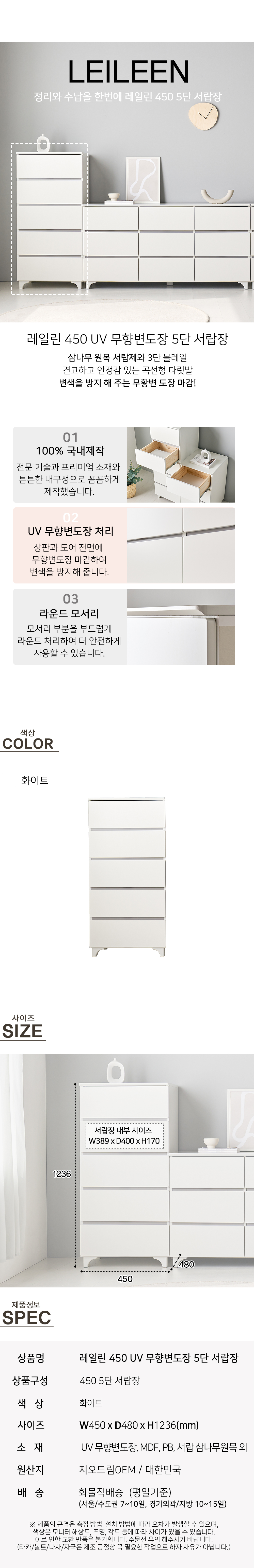 [모로]레일린 무향변도장 450 5단 서랍장 옷서랍장 수납장 틈새 미니서랍장